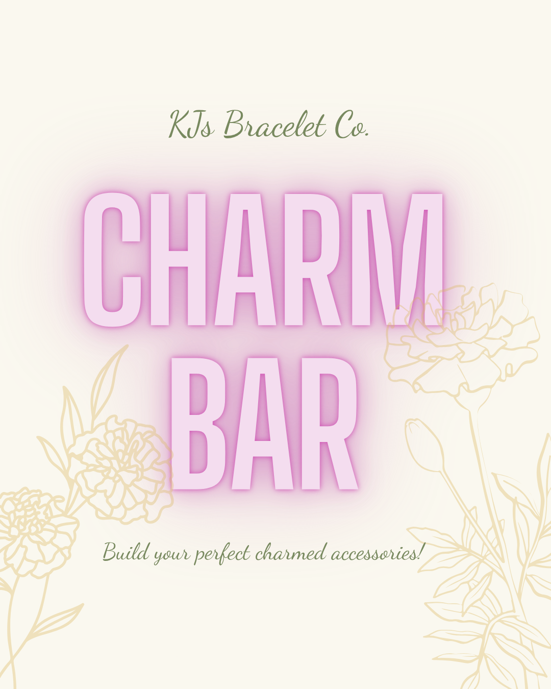 The cutest corner of KJB! This is where you get to be the designer. Start with your base (bracelet, necklace, or keychain), then pile on the charms that speak your style.