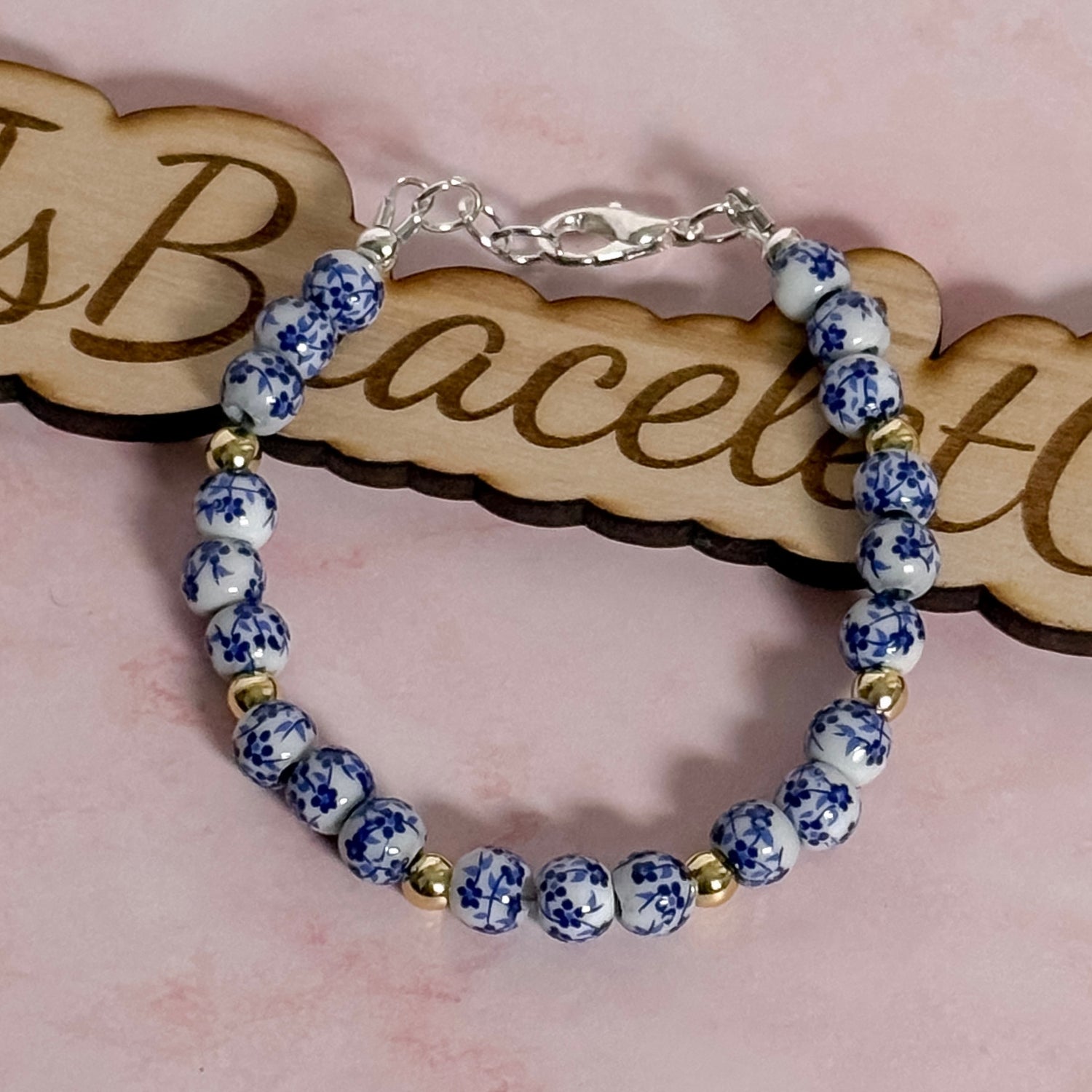 Classic, elegant, and effortlessly charming. Blue Belle features white beads with delicate blue floral detailing, finished with soft gold accents for a timeless and feminine look. This bracelet feels like vintage romance with a modern twist, making it perfect for both everyday wear and special occasions.