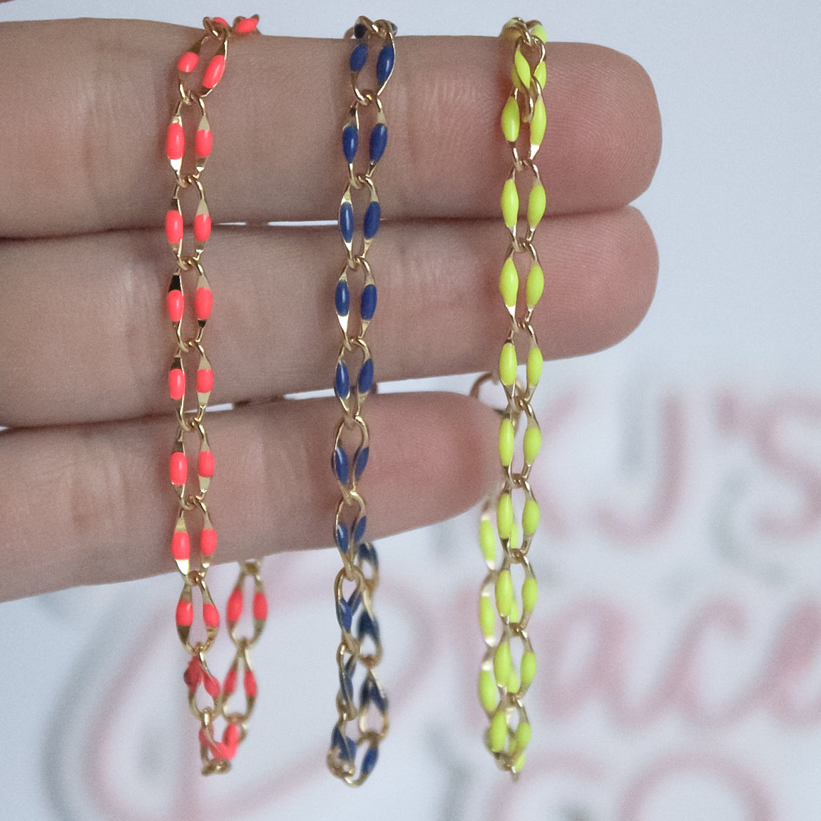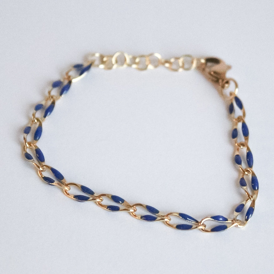 Blueberry Twist is a handmade chain bracelet featuring a bold blue and gold twist design that adds the perfect pop of color to any outfit. Lightweight and eye-catching, this bracelet is great for everyday wear, summer styling, bracelet stacks, or adding a fun boutique touch to your look. Blueberry Twist pairs beautifully with other pieces or makes a simple statement all on its own.