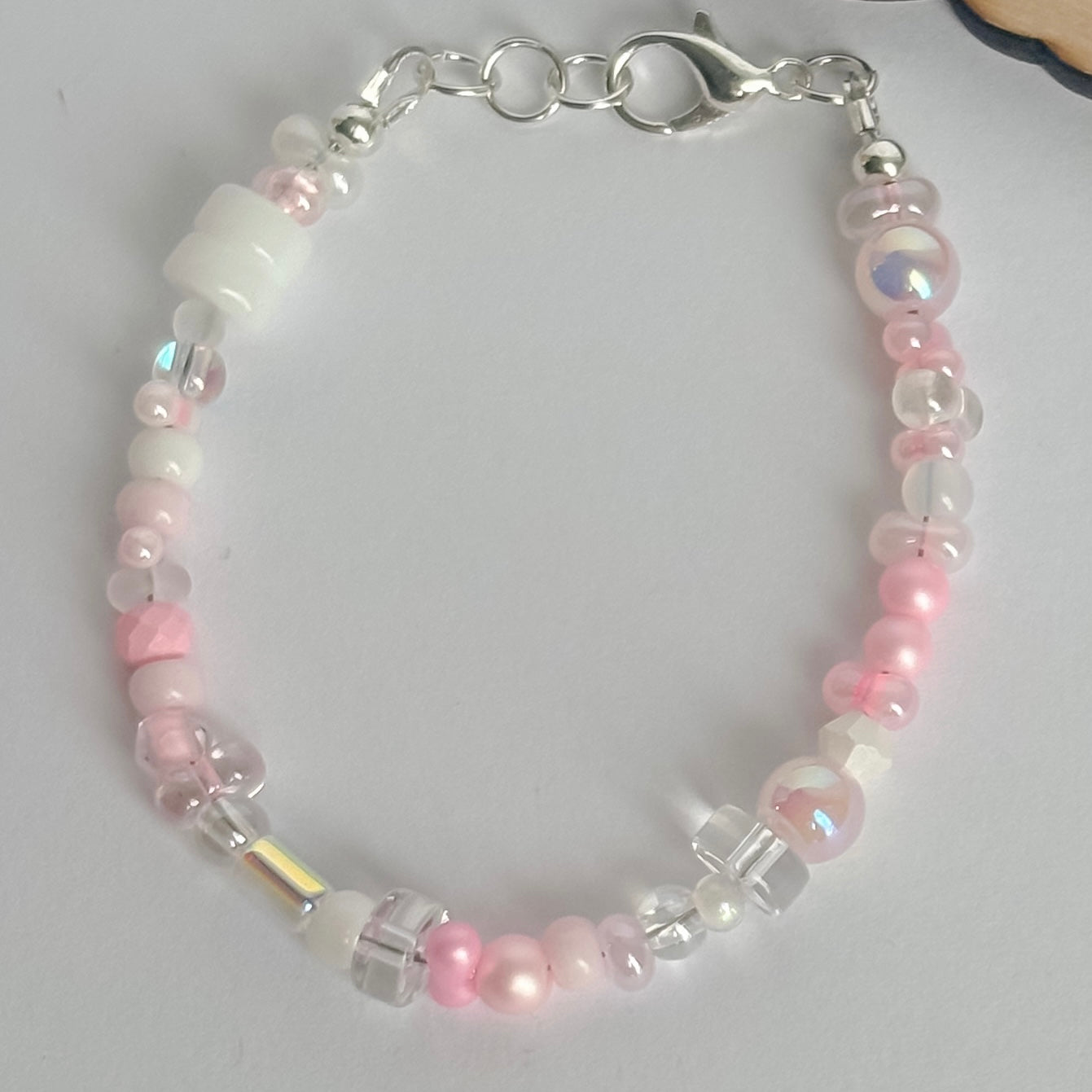 Featuring a curated mix of 4mm Czech beads, faceted crystal accents, and soft pearl finishes, this bracelet adds dimension and shine while keeping a feminine, romantic feel.