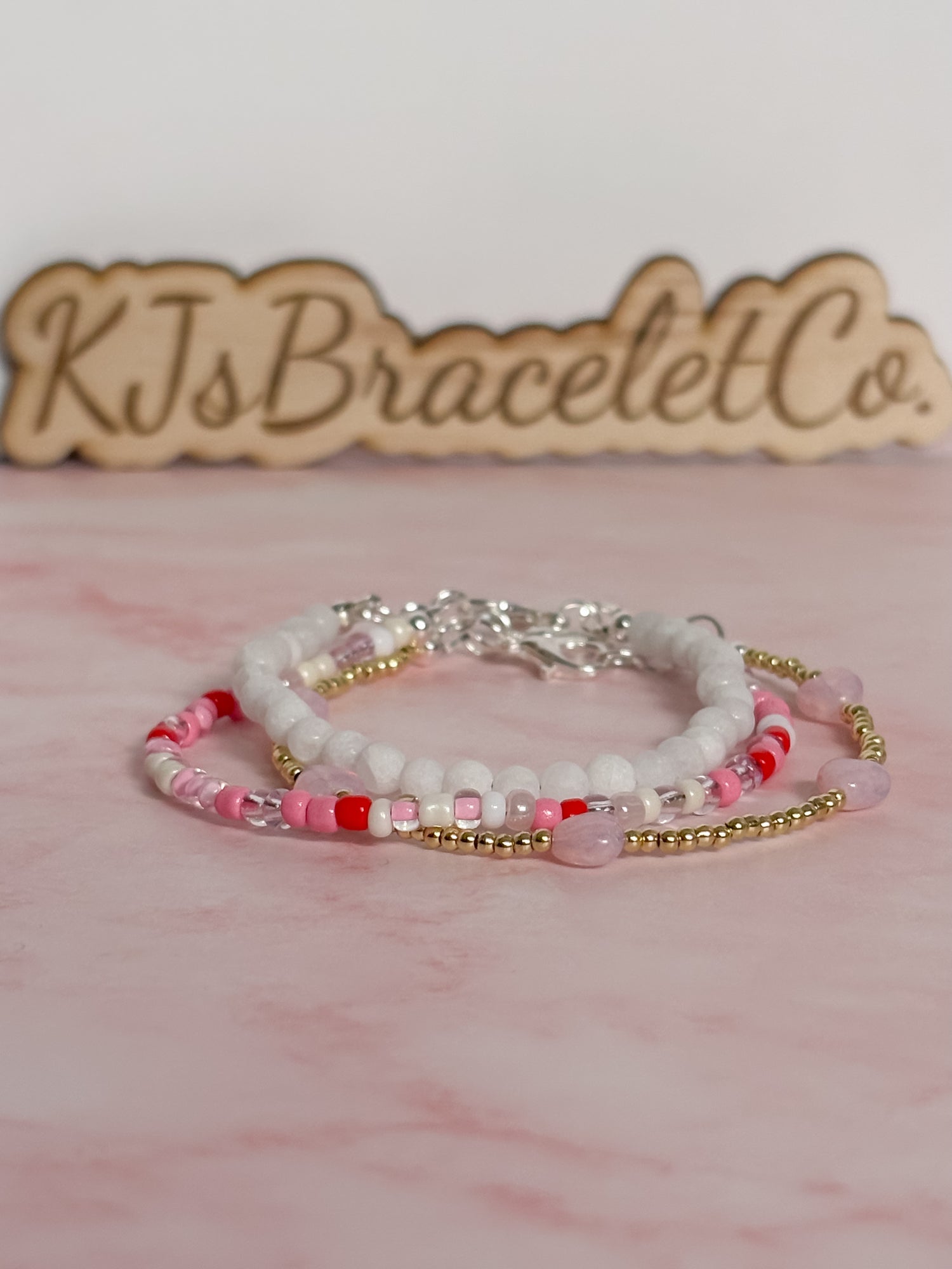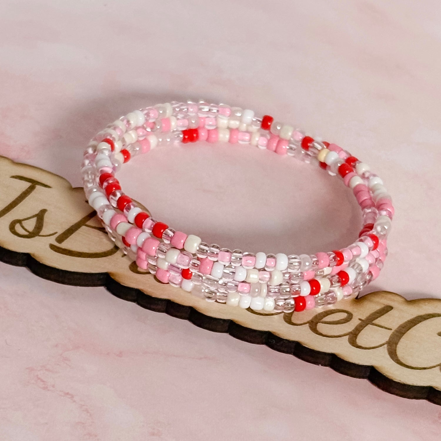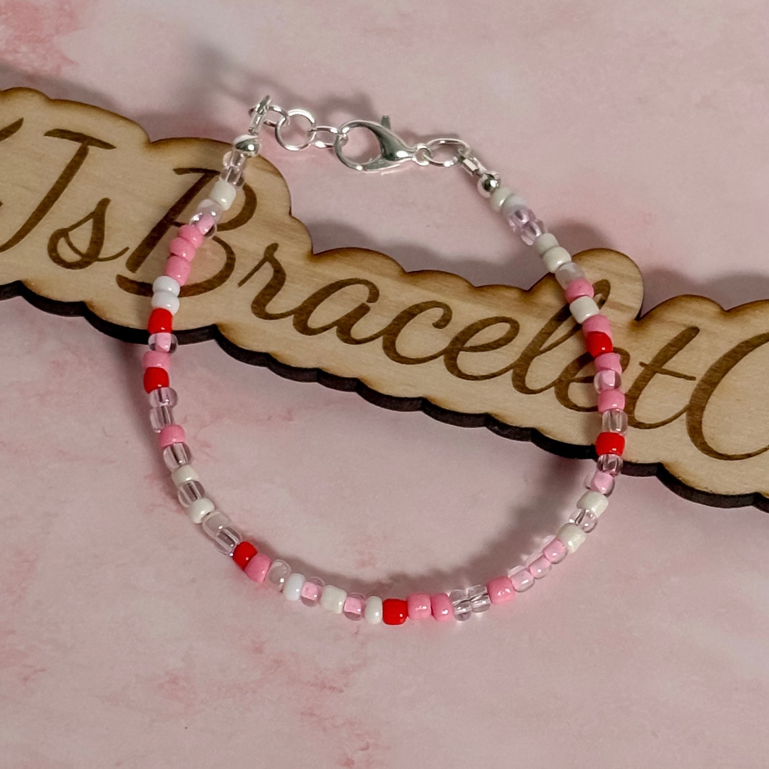 Soft, sweet, and perfectly minimal. The Dainty Darling bracelet is designed for those who love a subtle pop of Valentine charm. Featuring delicate pink, red, and ivory tones, this bracelet is lightweight, timeless, and perfect for everyday wear.