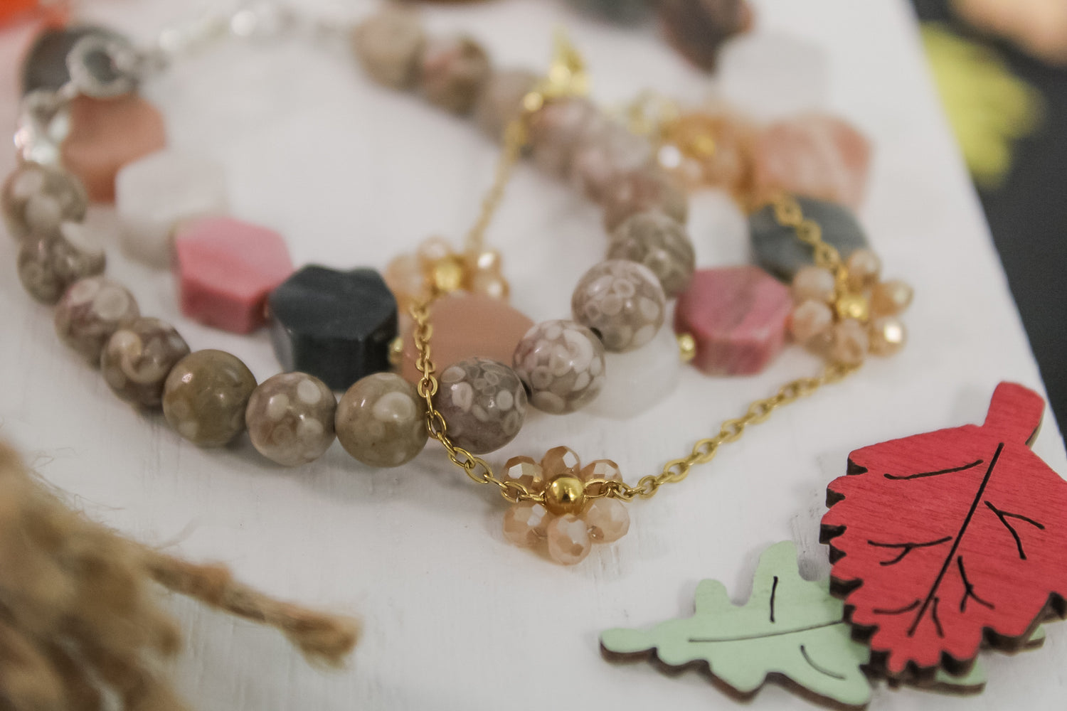 Soft, earthy, and effortlessly elegant — the Fall Blush Bracelet combines muted pinks, warm neutrals, and deep autumn tones in striking hexagon-cut beads. With a mix of blush, ivory, gray, and terracotta shades, this bracelet feels both modern and cozy — perfect for sweater season or stacking with your everyday favorites.