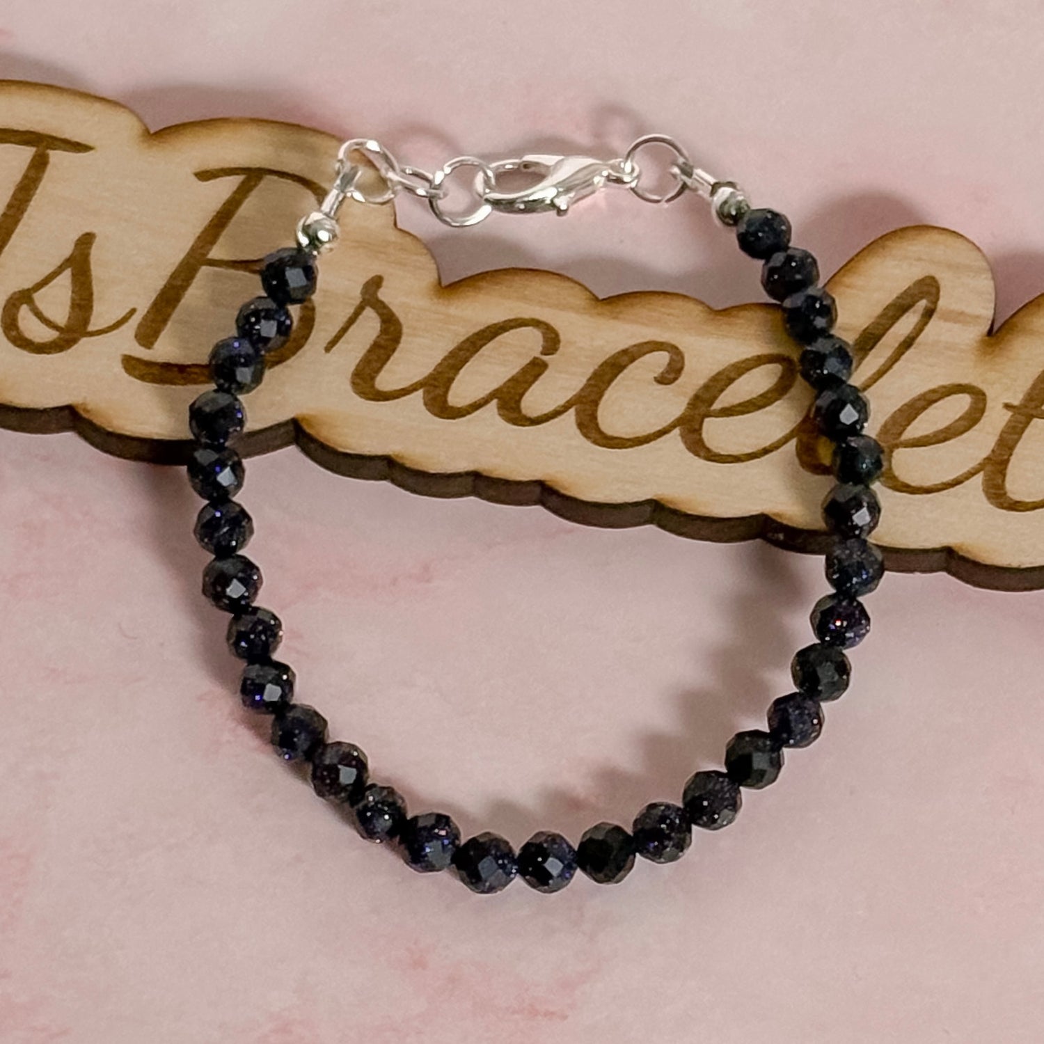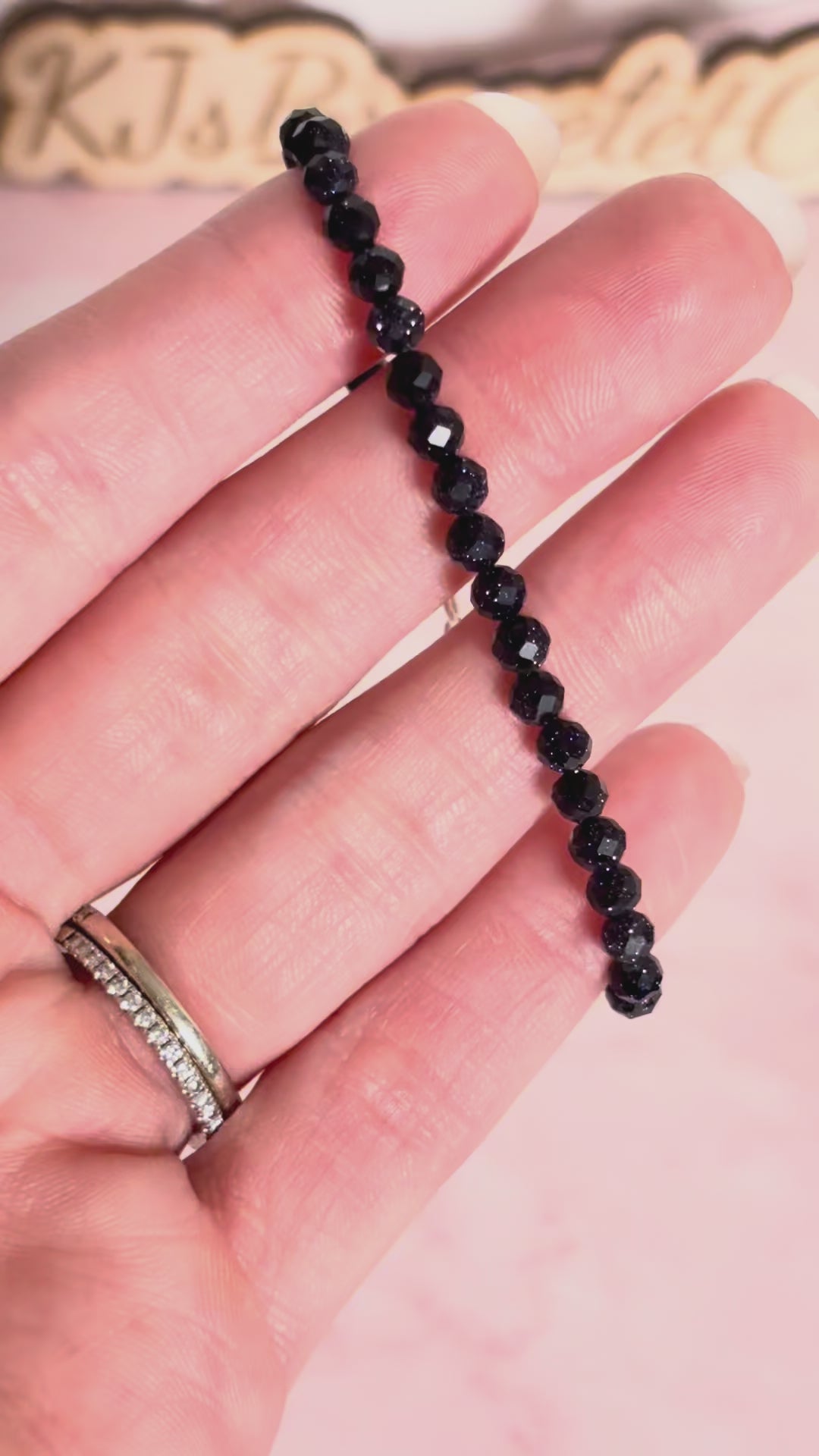 Dark, dreamy, and full of sparkle. Midnight Spark features deep navy blue faceted beads that almost read black until the light hits them—then they shimmer with the most beautiful sparkle. It’s moody, elegant, and absolutely stunning in person.