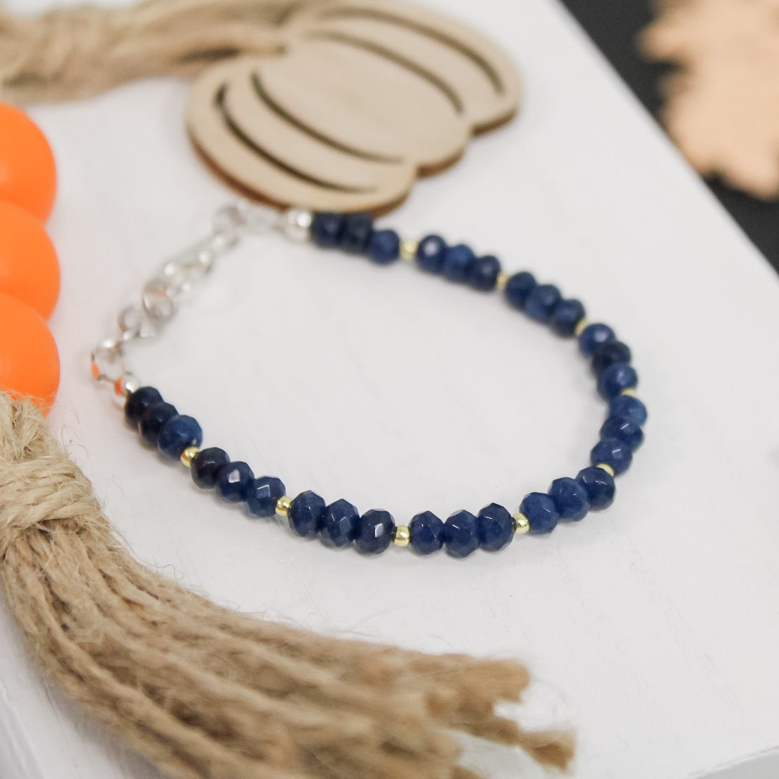 Faceted beads in rich navy blue shimmer with every move, accented by tiny gold or silver spacers for just the right hint of shine. Perfect for layering or standing solo, this piece is a year-round staple with major autumn vibes.